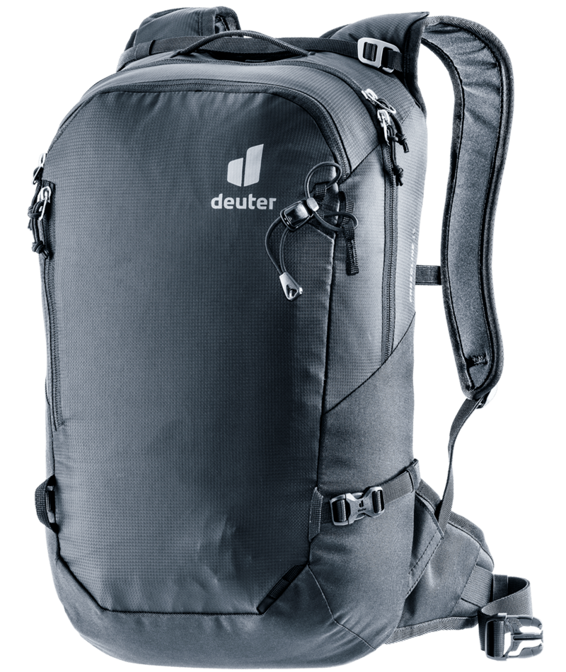A winter sports backpack for riders who enjoy the freedom of exploring on- and off-piste in safety. COMPACT FIT FOR FULL CONTROL All-mountain skiing or boarding means anything from big wide turns, challenging bumps, big air and floaty pow. When moving through such varied terrain the Freecline needs to create a solid fit and keep the load close to your center of gravity. And that’s down to the comfortable deuter Alpine back system with ergonomic shoulder straps, 2-way adjustable sternum strap and wrap-around hip fins. EFFECTIVE ORGANIZATION FOR ADAPTABILITY Quick access to extra layers or snacks in the main compartment, a well-organized and easy-to-access emergency equipment compartment inside, and an intuitive system for attaching skis or a snowboard make the Freecline a practical backcountry companion, especially when things get serious and safety equipment needs to be accessed fast. CLEVER FUNCTIONAL DESIGN If the attachment for an ice axe or poles isn’t needed, it can be used for attaching skis diagonally across the pack. And by linking the side compression straps, a snowboard is attached to the front in no time at all.