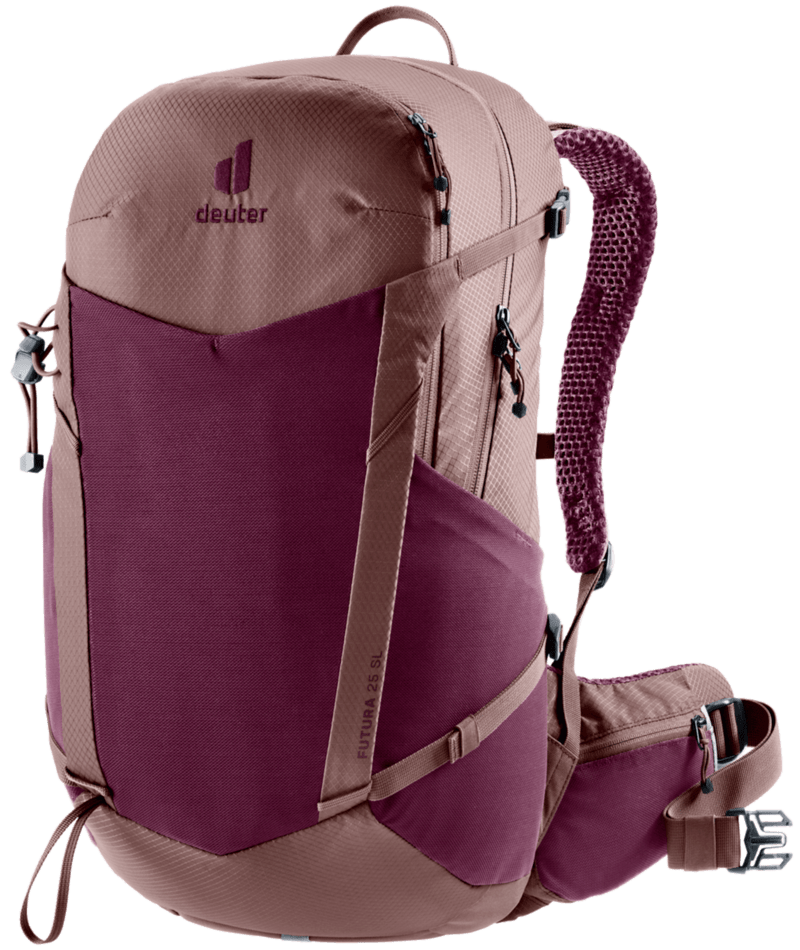 Designed for smaller physiques, this lightweight hiking backpack benefits from the Aircomfort back system with ActiveFit shoulder straps and hip fins with Pull-Forward adjustment for optimum load transfer, even weight distribution and effective ventilation. With practical stretch pockets on the outside and hip fin pockets for items you want to keep within reach during a day hike. Plus, attachment options for other hiking gear such as poles etc.