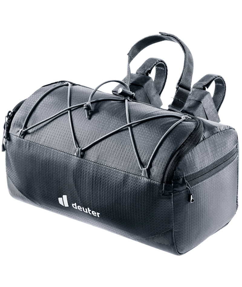 A handlebar pack for starting out in bikepacking, made from durable, recycled, bluesign? approved material with a bungee cord on the top to attach easy-access items, and with zippered side pockets, a spacious main compartment and reflective details. The durable straps, combined with spacers, make it possible to mount this handlebar pack on a variety of frame sizes and tube diameters, while the hook & loop closure keeps it securely in place.
