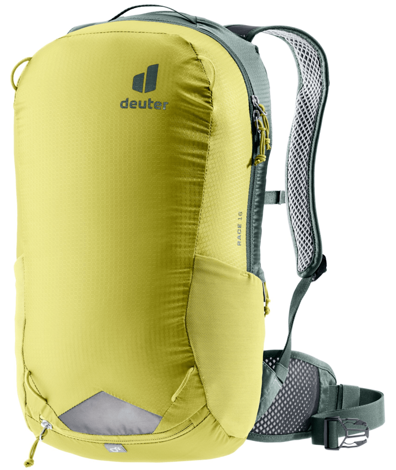 This pared down bike backpack with good weight-to-comfort ratio benefits from the breathable deuter Airstripes back system. Providing athletic mountain bikers with good airflow across the back and a snug fit for technical trails. A sternum strap and mesh hip fins give the pack additional stability. With bluesign(R) approved body fabric made of 100% recycled materials, and components made using environmentally friendly, resource-efficient manufacturing practices, the Race meets the highest environmental standards and is climate neutral, and PFC free. ?
