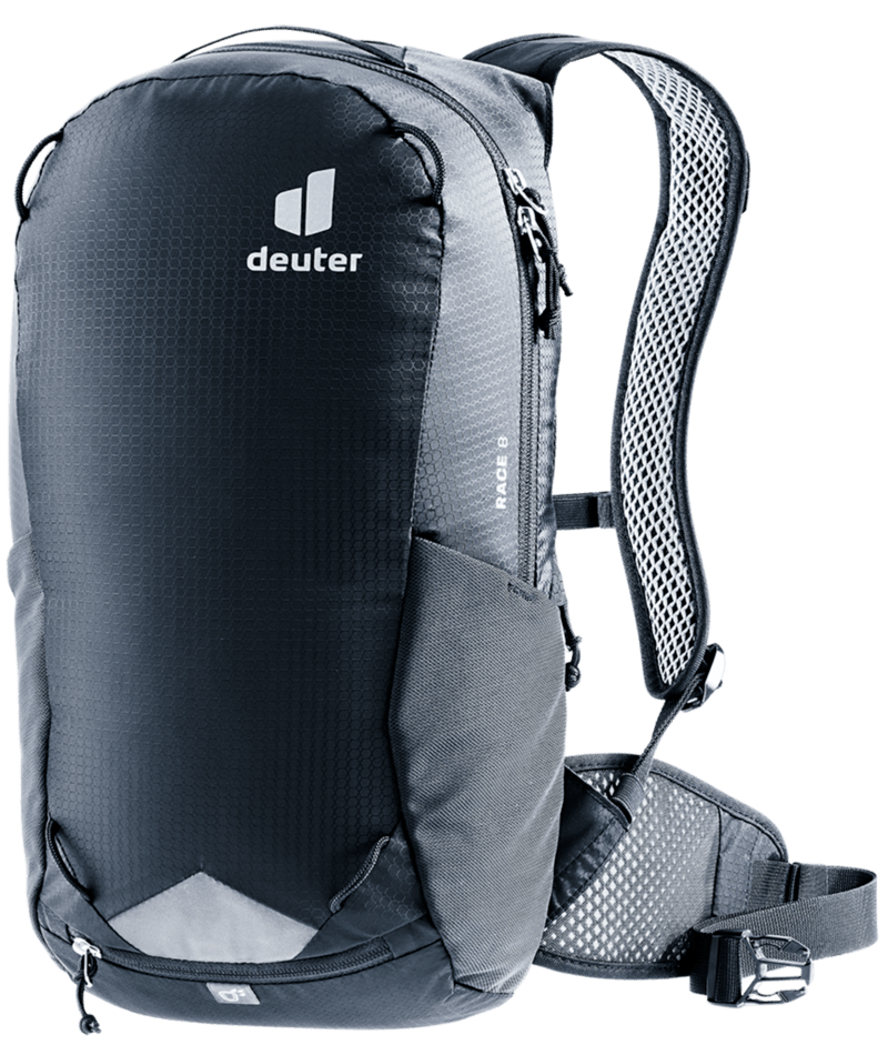 This pared down bike backpack with good weight-to-comfort ratio benefits from the breathable deuter Airstripes back system. Providing athletic mountain bikers with good airflow across the back and a snug fit for technical trails. ?A sternum strap and mesh hip fins give the pack additional stability. With bluesign(R) approved body fabric made of 100% recycled materials and components made using environmentally friendly, resource-efficient manufacturing practices, the Race meets the highest environmental standards and is climate neutral, and PFC free. ?