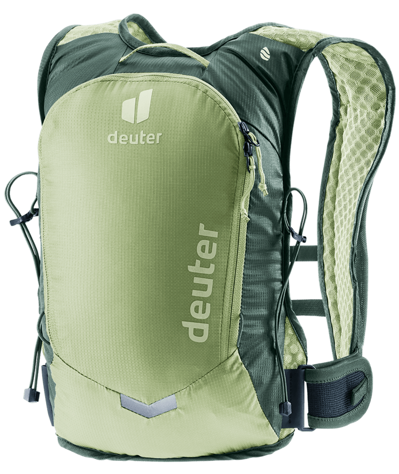 This lightweight vest-style biking backpack creates a garment-like fit for superior stability and full range of movement over longer distances. The two sternum straps together with ribcage side straps cinch it in precisely, for a snug fit without restricting breathing. The perforated shoulder straps, minimized use of materials, and lightweight deuter Lite back system combine to generate maximum ventilation. Stash your energy bars, tools, and cell phone in the shoulder strap pockets; a wind shell and 2-liter bladder in the main compartment.