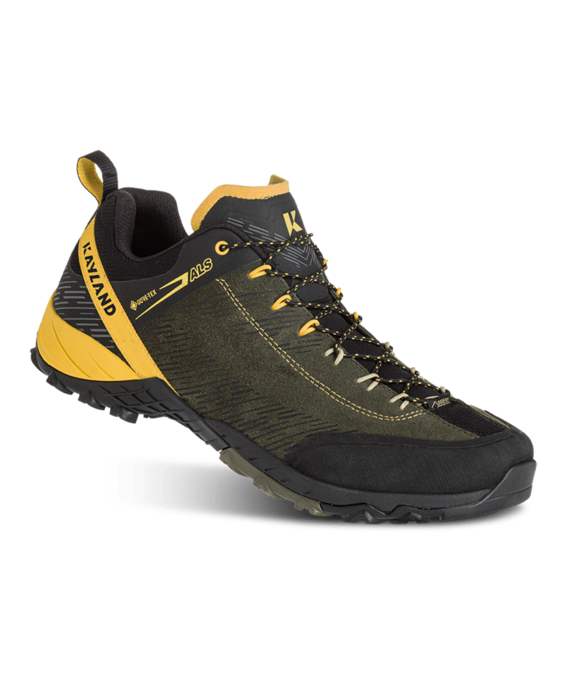 Kayland’s new low-cut shoe, designed for fast hikes at medium altitudes on varied terrain. Lightweight and protective, Revolt features a suede upper and synthetic inserts. The real innovation of the shoe is the direct lamination of the Gore-Tex Invisible Fit membrane onto the upper: Revolt is the first shoe ever to have this process integrated into the leather. Direct lamination ensures that all creases and wrinkles are eliminated, thus reducing pressure points and ensuring a perfect fit. The construction technique helps reduce shoe weight, cut down water absorption and speed up drying times. The lacing system comprises a webbing of laces that tighten the upper to provide enhanced comfort and precision.