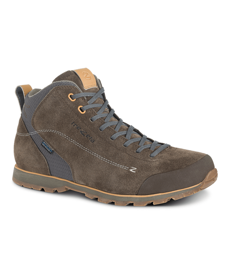 Urban dweller or travel blogger spirit? Carefree travel, wherever you go! Zeta Mid WP is a lightweight and versatile lifestyle shoe to ensure you look your best whatever the occasion: at work, when travelling, out and about in town or a fun evening with friends. One pair of shoes for so many settings…seriously? Sure! The secret is in the quality materials we use, which provide a perfect blend of performance and style to deliver a multifunctional shoe: great-looking and always comfortable, they deliver outstanding walking pleasure whatever you’re doing. The waterproof suede upper protects the foot with a touch of elegance, and the side insert in breathable mesh and Trezeta Water Stopper membrane ensure excellent durability and waterproofing. A real stand-out feature is the Vibram Ecostep sole featuring an eco-friendly compound, with 30% coming from material recycled from the manufacturing processes of the Vibram soles. The result is a quality outsole which delivers all-day comfort for travelling, outdoors and everyday use. What?s more, it also facilitates the natural rolling action of the foot. What better way to feel connected to the earth than stepping out in a safe pair of shoes, knowing that you?ve also done your bit for the environment? Zeta Mid WP provides excellent ankle protection but with a contemporary style. Stylish touches round off the shoe: coloured eyelets which match the rand, the leather tongue and collar in contrasting colours, the eye-catching design of the side stitching, the stamped logo and the distinctive texture of the sole. The colour palette reflects the eclectic spirit of those who are at ease both on city sidewalks and backcountry trails: natural tones with a casual and eco-chic style that team perfectly with any outfit.