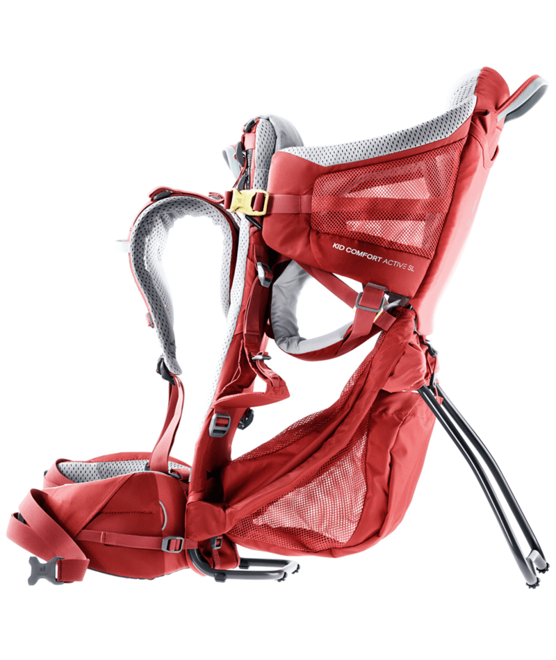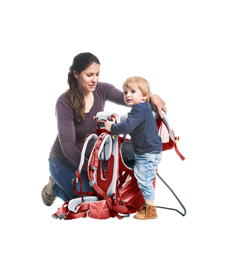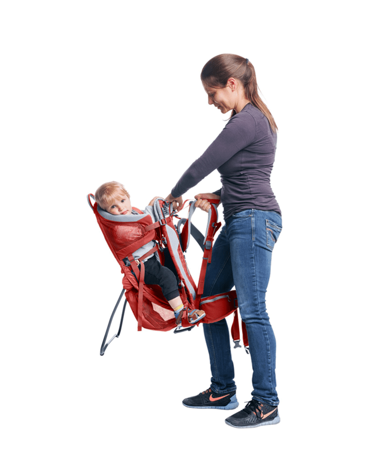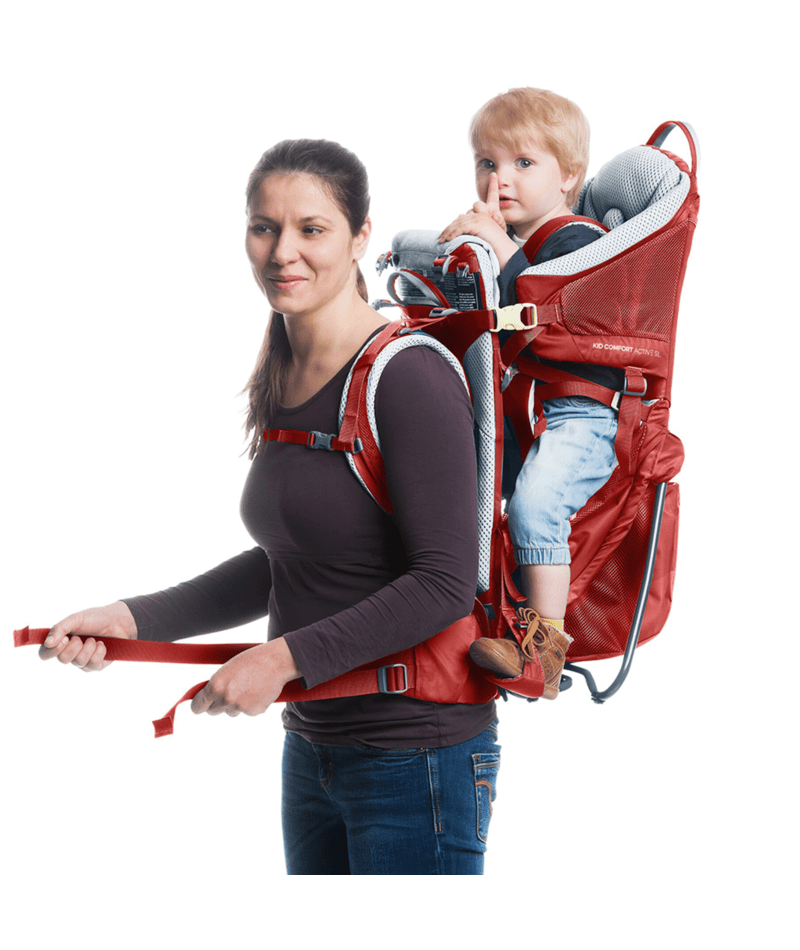 The Kid Comfort Active SL is designed for mothers looking for a child carrier that fits them perfectly. Featuring slimmer shoulder straps and conically shaped hip fins, the carrying system is specifically adapted to the female anatomy. The new, compact Lite Air Contact back with ventilation makes this child carrier absolutely lightweight. The sporty frame offers a comfortable height and is TUV GS approved. The seating area for the child is a comfort zone with its simple-to-use and easy-to-access safety harness, the side access and the very soft cover material.