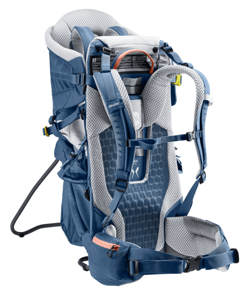 The new, compact Lite Air contact back with ventilation makes this child carrier absolutely lightweight. The sporty frame offers the height of comfort and naturally bears the TUV GS safety seal of approval. The seating area for the child is a comfort zone with the simple-to-use and easy-to-access safety harness, the side access and the very soft cover material. The unisex fit with specially adapted shoulder straps and hip fins lets mum and dad take turns carrying the child.
